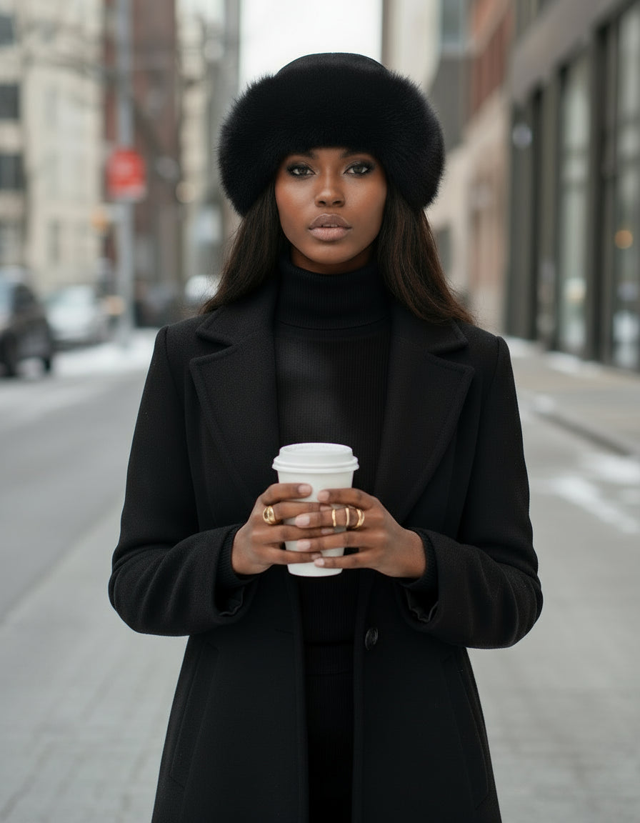The Faux-Fur Cuff Pillbox Hat blends classic sophistication with modern warmth. Each piece is meticulously hand-sewn in Canada from a soft acrylic-cotton knit and finished with a plush faux-fur underside that feels as good as it looks. A quilted interior adds extra warmth and structure, making this pillbox as practical as it is polished.