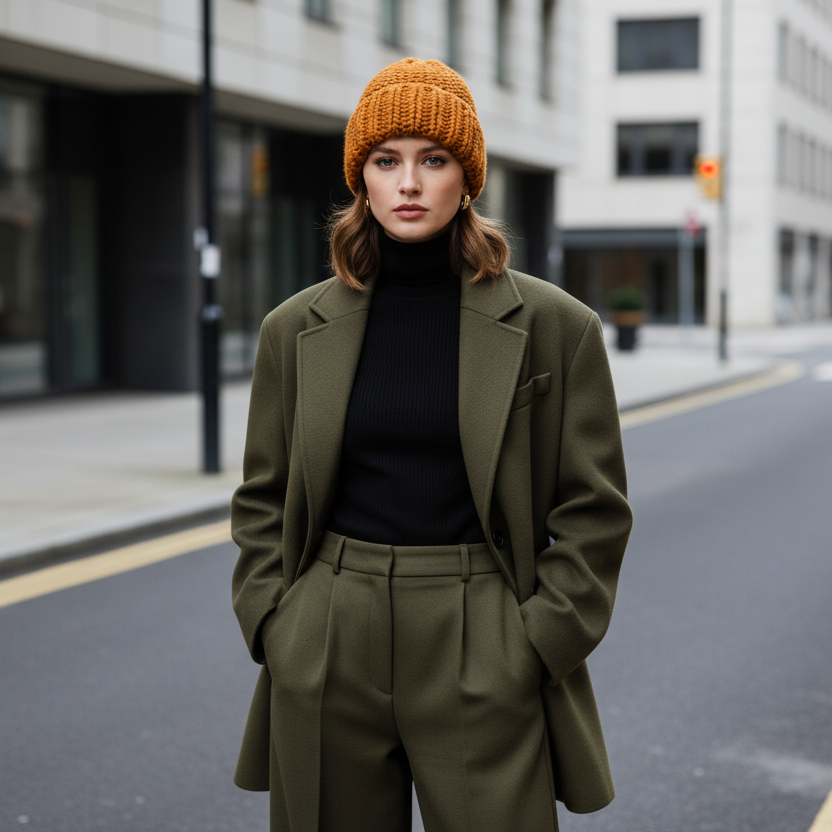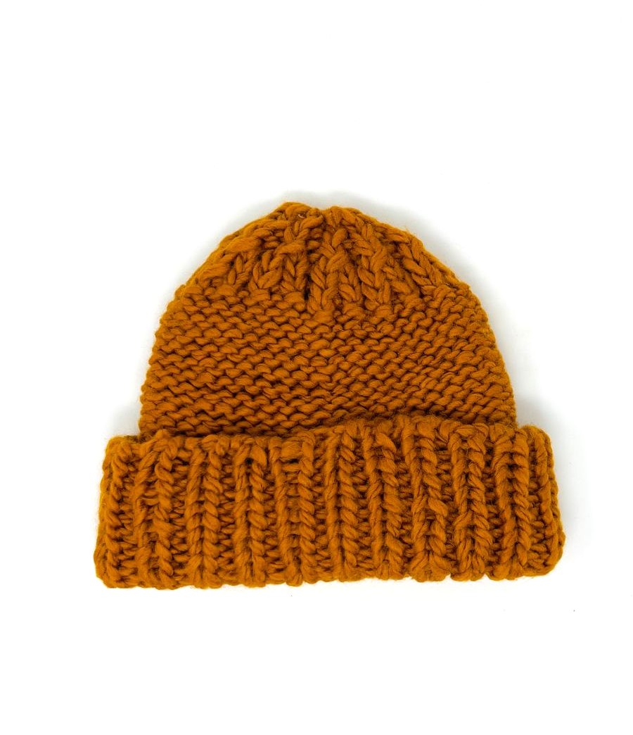 - Hand-knit beanie: Wool/Acrylic blend